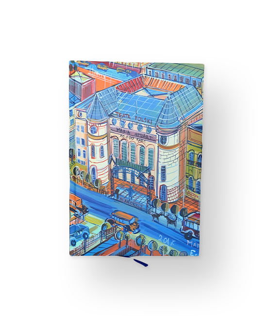 A notebook showing a fragment of Edward Dwurnik's painting "Teatr Polski". The notebook is issued in A5 format, 80 lined sheets. It is packed in an elegant box with a magnetic closure. The closed edition is limited to 300 copies.